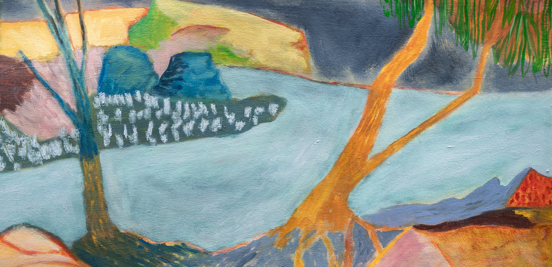 “Las siguientes series de pinturas reúnen mis reflexiones, memorias y sueños a través de paisajes habitados por presencias sutiles. En ellos, lo humano y lo animal se insinúan, el paisaje se vuelve onírico y el color articula una atmósfera abierta a múltiples lecturas.”