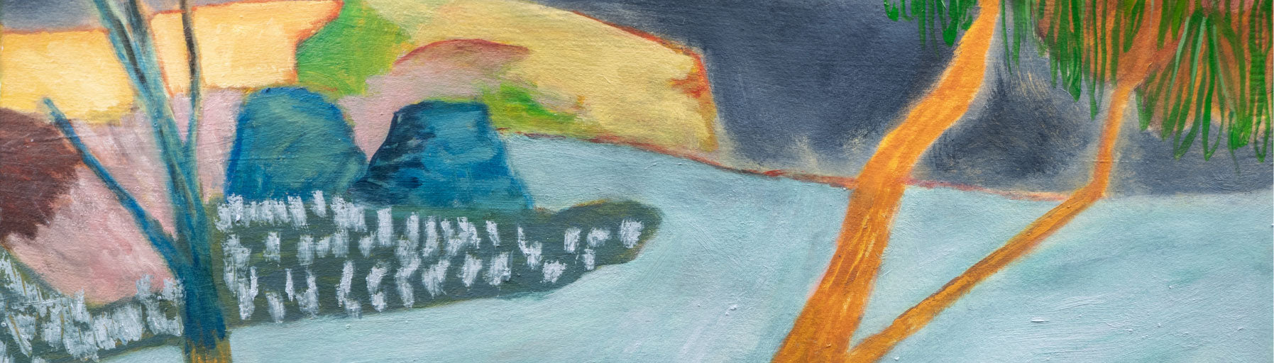 Esta serie de paisajes abstractos y expresivos surge de la exploración de la materialidad del óleo y diversas formas de aplicar la pintura, ya sea mediante transparencias o capas gruesas con pinceladas pequeñas o grandes. Los paisajes transmiten un espíritu lúdico y alegre, pero al mismo tiempo evocan una sensación de soledad y distancia, como si pertenecieran a un mundo perdido. Son espacios que se sienten físicos, aunque no remiten a un lugar concreto.